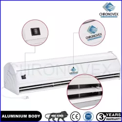 The AERSTER 2 Feet Metal Body Air Curtain is built for compact commercial spaces that demand strong air protection and reliability. Made from a heavy-duty metal body and powered by a high-efficiency 100% copper motor, this unit creates a steady air barrier to block dust, insects, and temperature fluctuations. Its compact design and quiet operation make it ideal for small office entrances, retail counters, and kitchen doors where hygiene and energy savings are essential.
